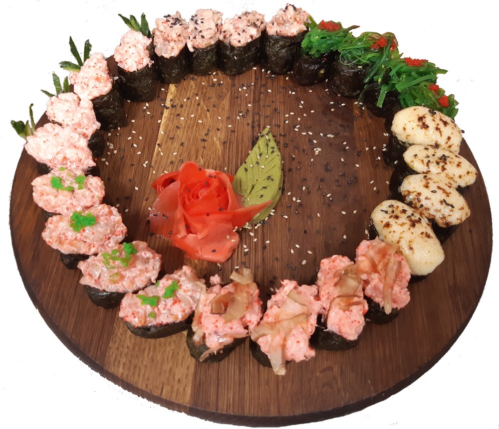 Гункан: чука, тунець, лосось, вугор, креветка, сирний огірок